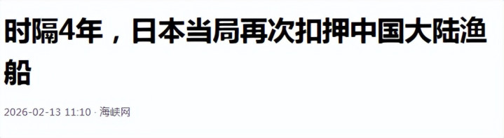 海峡网《时隔4年,日本当局再次扣押中国大陆渔船》发布时刻:2026.2.13