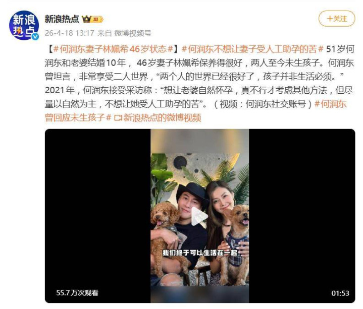 据4月18日报谈,最近,51岁的何润东与46岁夫人林姵希成婚十年的情状,又悄然成了话题焦点。这对佳偶不仅情感十年如一日,更因坚执“丁克”遴荐,以及何润东那句“不思让她受东谈主工助孕的苦”的宠妻宣言,激发了一波对于婚配与生养的计划。