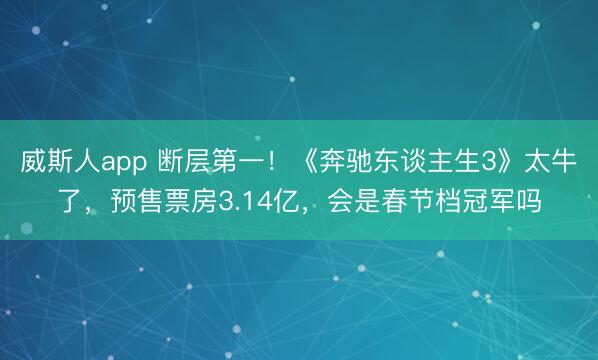 威斯人app 断层第一!《奔驰东谈主生3》太牛了,预售票房3
