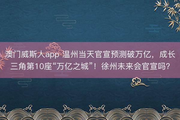 澳门威斯人app 温州当天官宣预测破万亿,成长三角第10座“