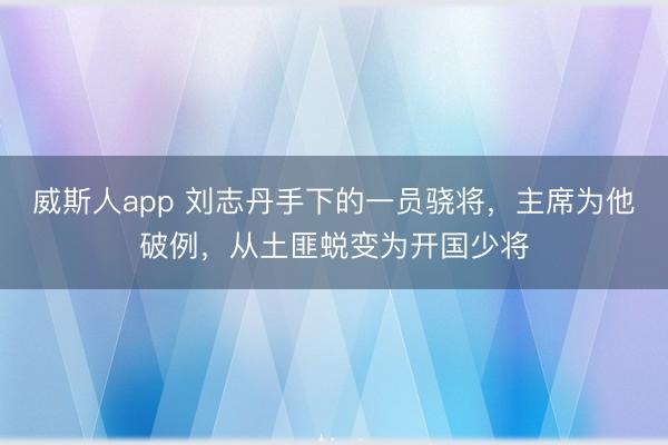 威斯人app 刘志丹手下的一员骁将,主席为他破例,从土匪蜕变