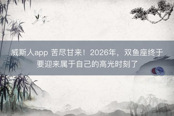 威斯人app 苦尽甘来!2026年,双鱼座终于要迎来属于自己