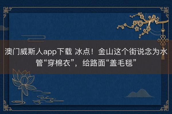 澳门威斯人app下载 冰点!金山这个街说念为水管“穿棉衣”,