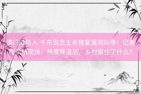 澳门威斯人 千东说念主杀猪宴漏洞叫停!记者在杀猪现场:热度降