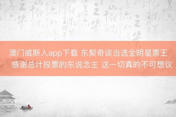 澳门威斯人app下载 东契奇谈当选全明星票王:感谢总计投票的