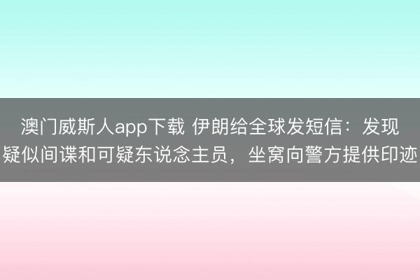 澳门威斯人app下载 伊朗给全球发短信:发现疑似间谍和可疑东