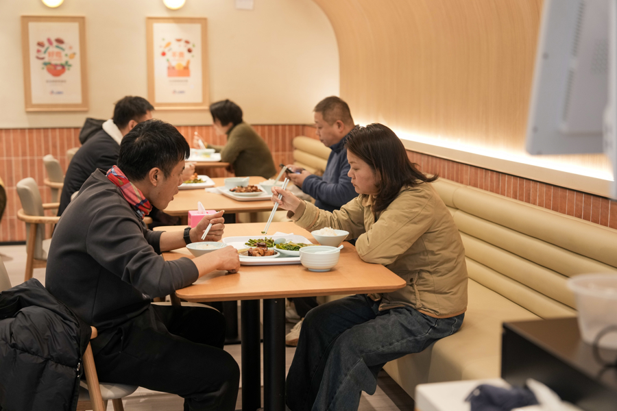 市民在社区食堂就餐