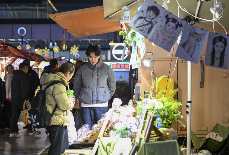 2026年1月7日在上海市静安区吴江路拍摄的夜间市集现场。新华社记者 陈浩明 摄