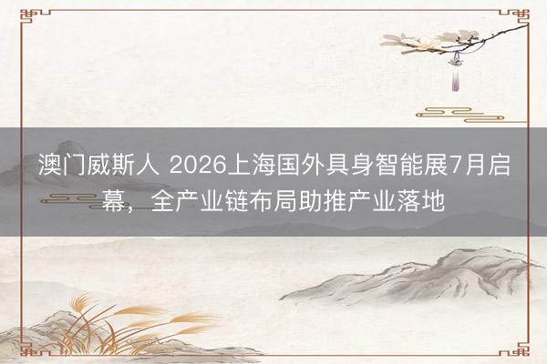 澳门威斯人 2026上海国外具身智能展7月启幕,全产业链布局