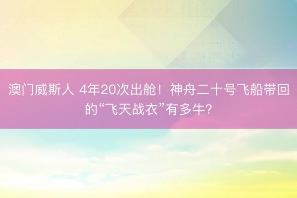 澳门威斯人 4年20次出舱!神舟二十号飞船带回的“飞天战衣”