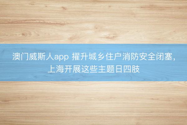 澳门威斯人app 擢升城乡住户消防安全闭塞,上海开展这些主题