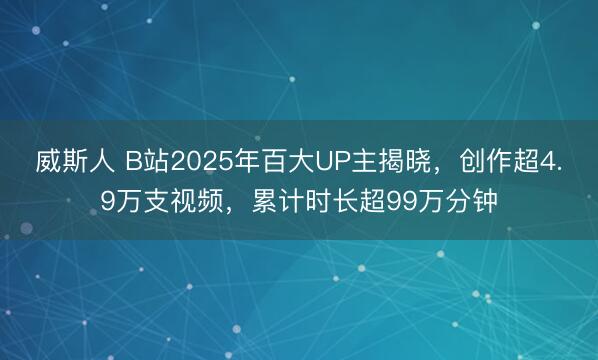 威斯人 B站2025年百大UP主揭晓,创作超4.9万支视频,