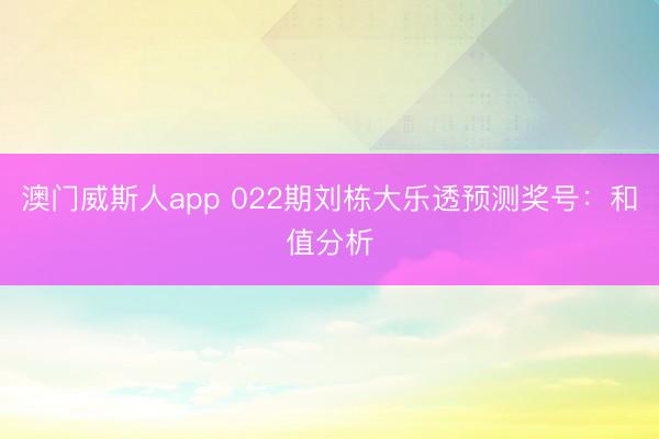 澳门威斯人app 022期刘栋大乐透预测奖号:和值分析