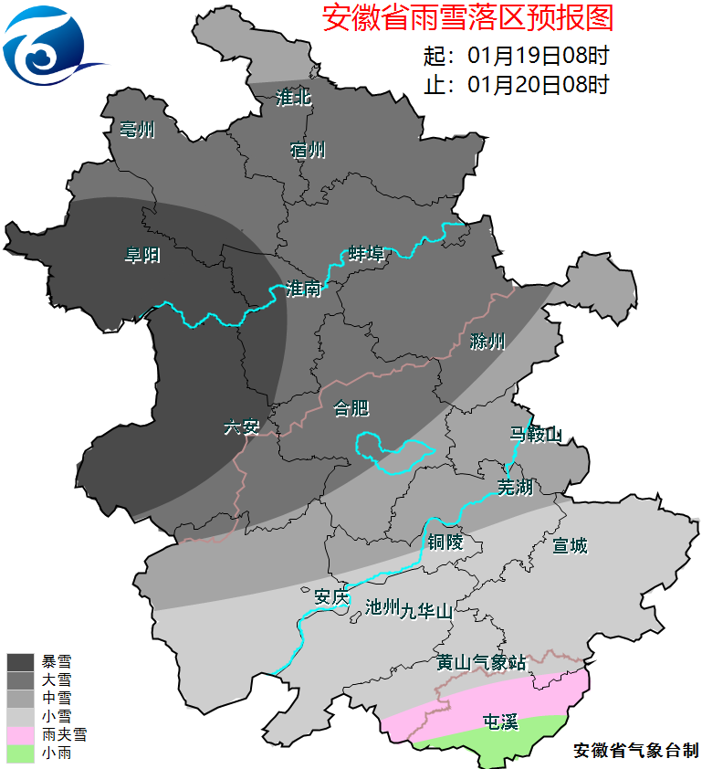 1月18日,安徽省快意部门贯串发布寒潮黄色预警和暴雪黄色预警。展望19—21日受强冷空气影响,全省平均气温将着落13℃~15℃,局辖着落非凡15℃。21—22日最低气温:淮河以北-12℃~-9℃;江淮之间-8℃~-6℃;江南-5℃~-3℃。同期全省平均风力增至4~5级,阵风7~8级。