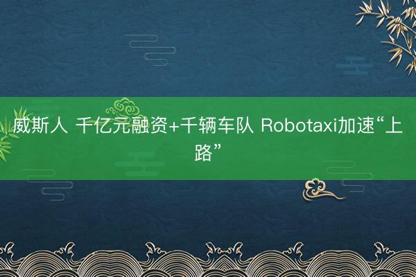 威斯人 千亿元融资+千辆车队 Robotaxi加速“上路”