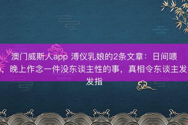 澳门威斯人app 溥仪乳娘的2条文章:日间喂奶,晚上作念一件