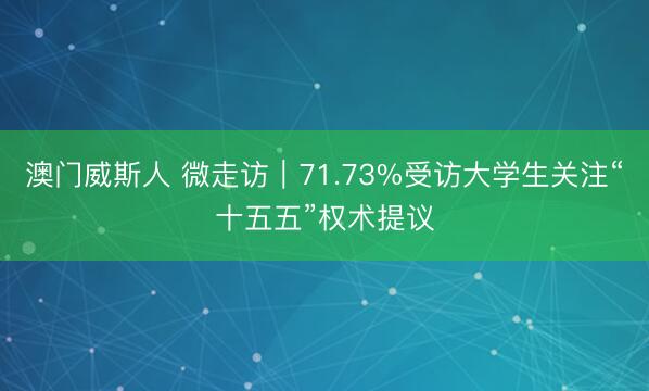 澳门威斯人 微走访|71.73%受访大学生关注“十五五”权术