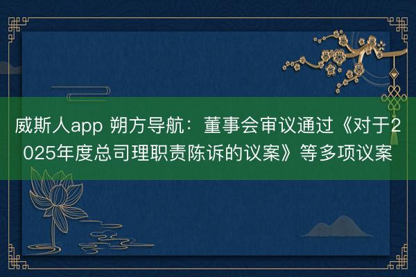 威斯人app 朔方导航:董事会审议通过《对于2025年度总司