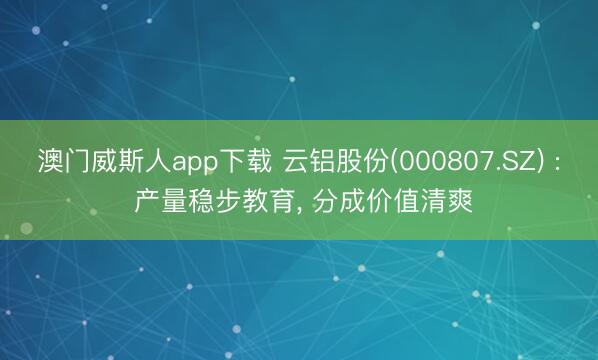 澳门威斯人app下载 云铝股份(000807.SZ) : 产