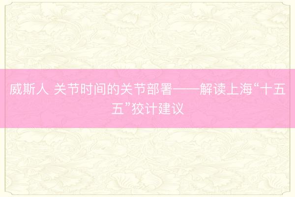 威斯人 关节时间的关节部署——解读上海“十五五”狡计建议