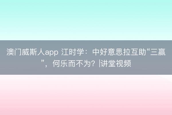 澳门威斯人app 江时学:中好意思拉互助“三赢”,何乐而不为