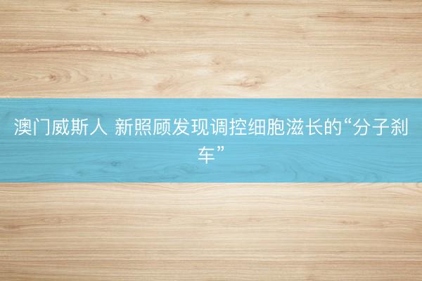 澳门威斯人 新照顾发现调控细胞滋长的“分子刹车”