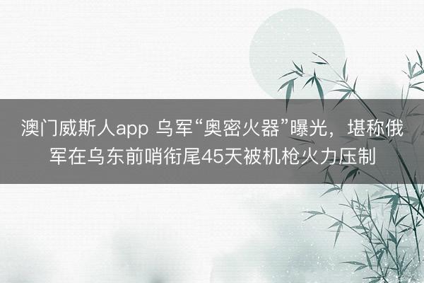 澳门威斯人app 乌军“奥密火器”曝光,堪称俄军在乌东前哨衔
