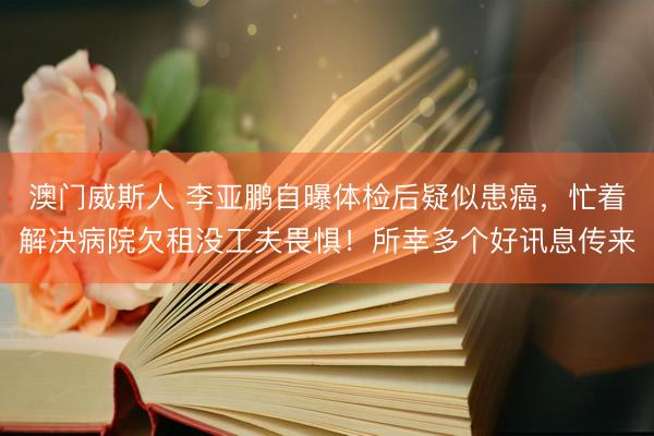 澳门威斯人 李亚鹏自曝体检后疑似患癌,忙着解决病院欠租没工夫