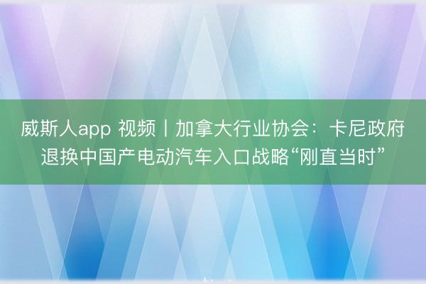 威斯人app 视频丨加拿大行业协会:卡尼政府退换中国产电动汽