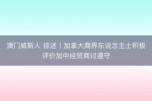 澳门威斯人 综述丨加拿大商界东说念主士积极评价加中经贸商讨遵