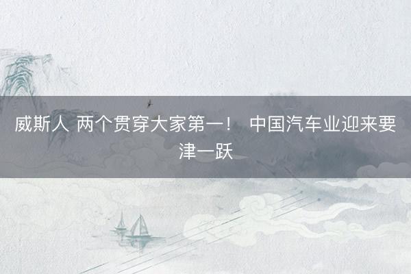 威斯人 两个贯穿大家第一! 中国汽车业迎来要津一跃