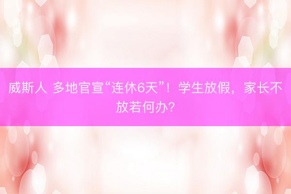 威斯人 多地官宣“连休6天”!学生放假,家长不放若何办?