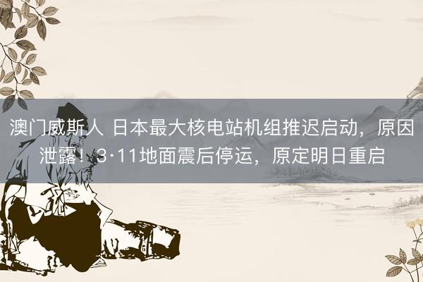 澳门威斯人 日本最大核电站机组推迟启动,原因泄露!3·11地