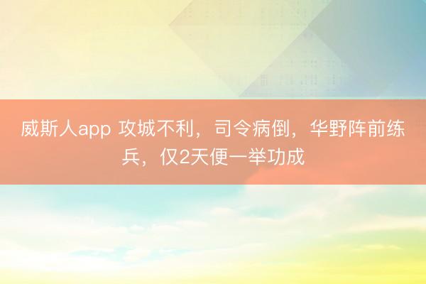 威斯人app 攻城不利,司令病倒,华野阵前练兵,仅2天便一举