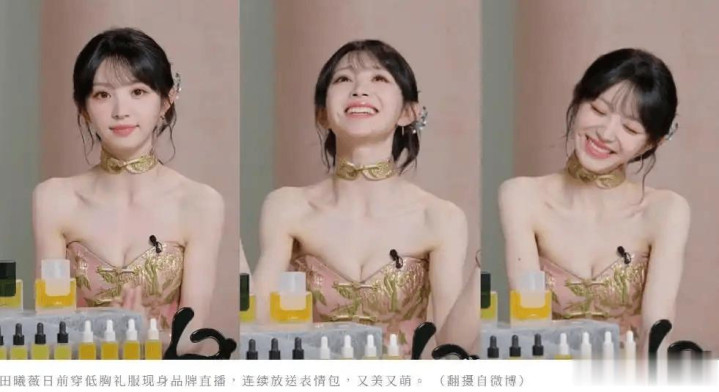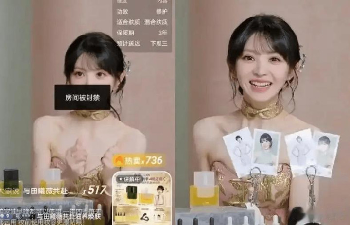 更好笑的是技能田曦薇的团队无备用服装,只可临时用4 张个东谈主写照小卡夹在胸前袒护,才归附了直播。