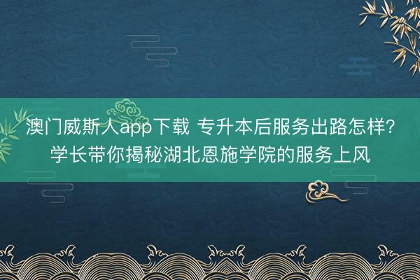 澳门威斯人app下载 专升本后服务出路怎样?学长带你揭秘湖北