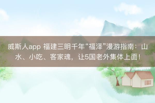 威斯人app 福建三明千年“福泽”漫游指南:山水、小吃、客家