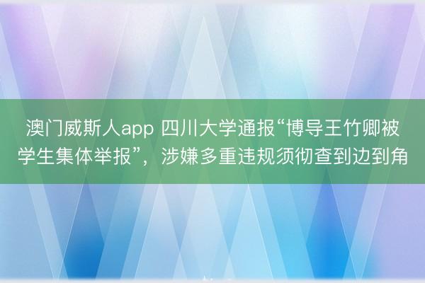 澳门威斯人app 四川大学通报“博导王竹卿被学生集体举报”,