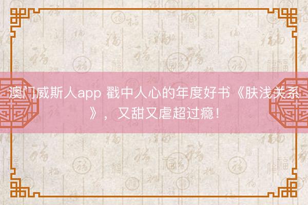 澳门威斯人app 戳中人心的年度好书《肤浅关系》,又甜又虐超