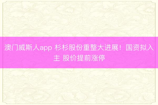 澳门威斯人app 杉杉股份重整大进展!国资拟入主 股价提前涨