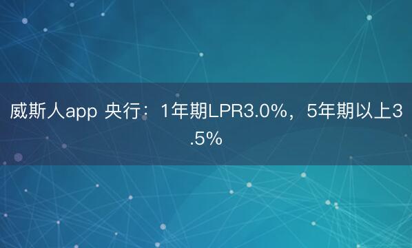 威斯人app 央行:1年期LPR3.0%,5年期以上3.5%