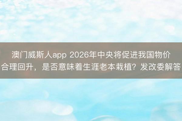 澳门威斯人app 2026年中央将促进我国物价合理回升,是否