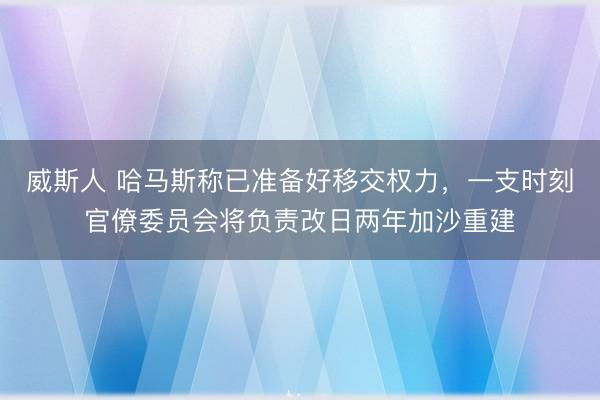 威斯人 哈马斯称已准备好移交权力,一支时刻官僚委员会将负责改