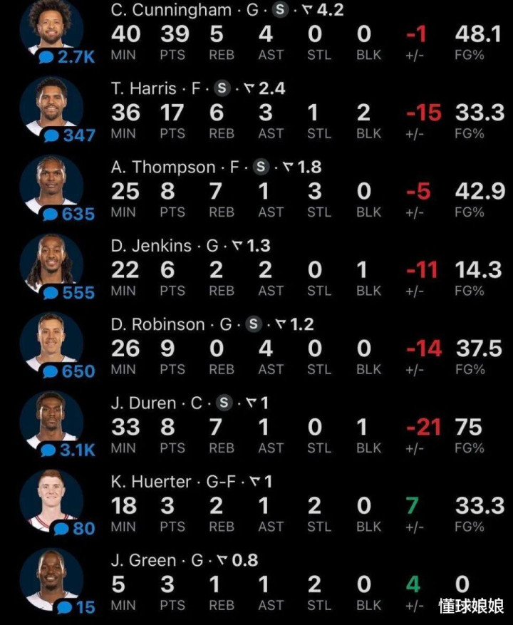 这也即是坎宁安的肺塌陷痊可的快,齐不敢念念象要是季后赛莫得坎宁安,活塞该有多好打。