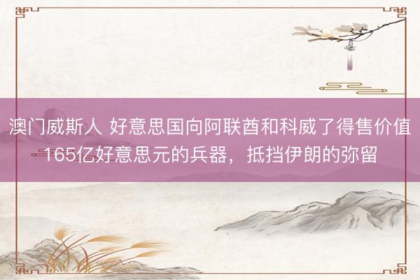 澳门威斯人 好意思国向阿联酋和科威了得售价值165亿好意思元