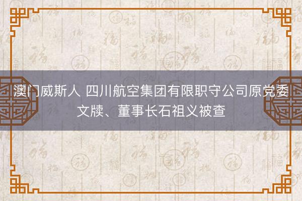 澳门威斯人 四川航空集团有限职守公司原党委文牍、董事长石祖义
