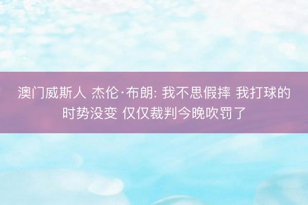 澳门威斯人 杰伦·布朗: 我不思假摔 我打球的时势没变 仅仅