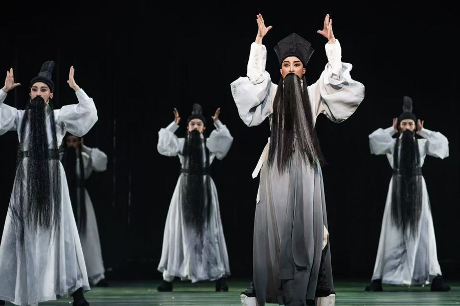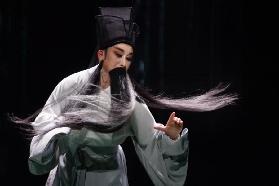 “多髯”,这可太好了!因为何真挚写了一个盗梦空间的您,领有45年舞台扮演警告的我,凸显灵感,试图用我们梨园行四功五法中老生的“髯口功”,来抒发您大起大落、灵通大合的一世。那么,这个“髯”字不是合一了吗?导演索求了我们文本中您的五个梦,我们试着用黑、灰、白三个不同颜料的髯口,舞出您的胸襟天地,舞出您的平正精炼,舞出您的诗性才思,舞出您的晴明超然……我们试着用文本提供的唱词、说念白,用我们的声息、我们的肢体,在导演创造的您的梦世界里,踏出一条您的萍踪,建构出您的行径线,直抵您一世的尽头。东坡先生,愿您是一束光,照亮我们前行的路。