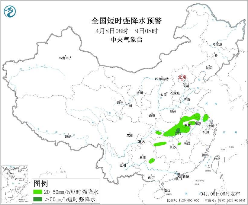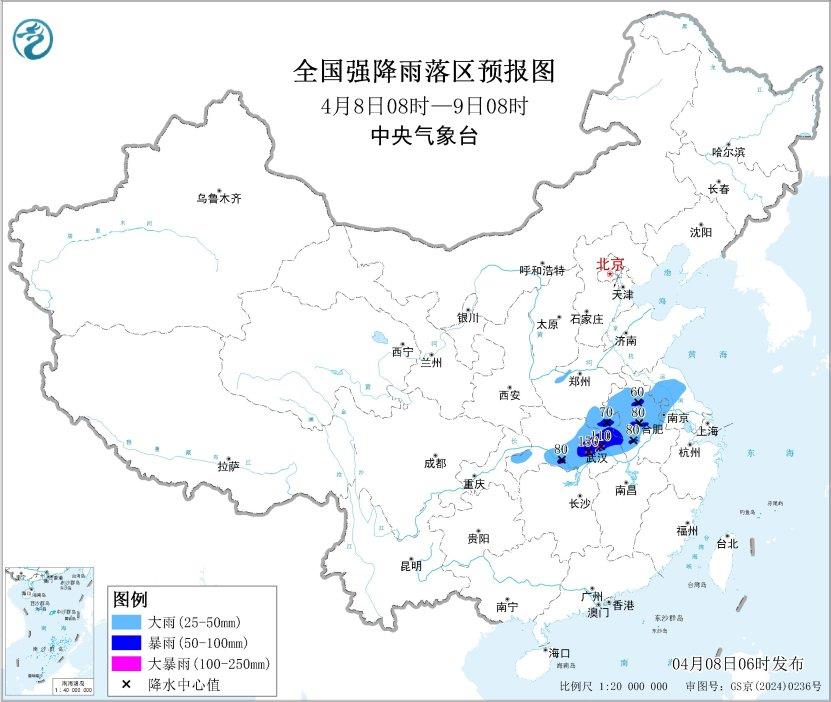中央怡悦台4月8日6时发布暴雨蓝色预警: