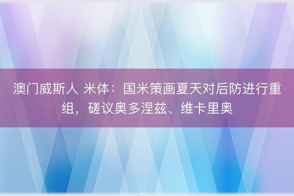 澳门威斯人 米体:国米策画夏天对后防进行重组,磋议奥多涅兹、